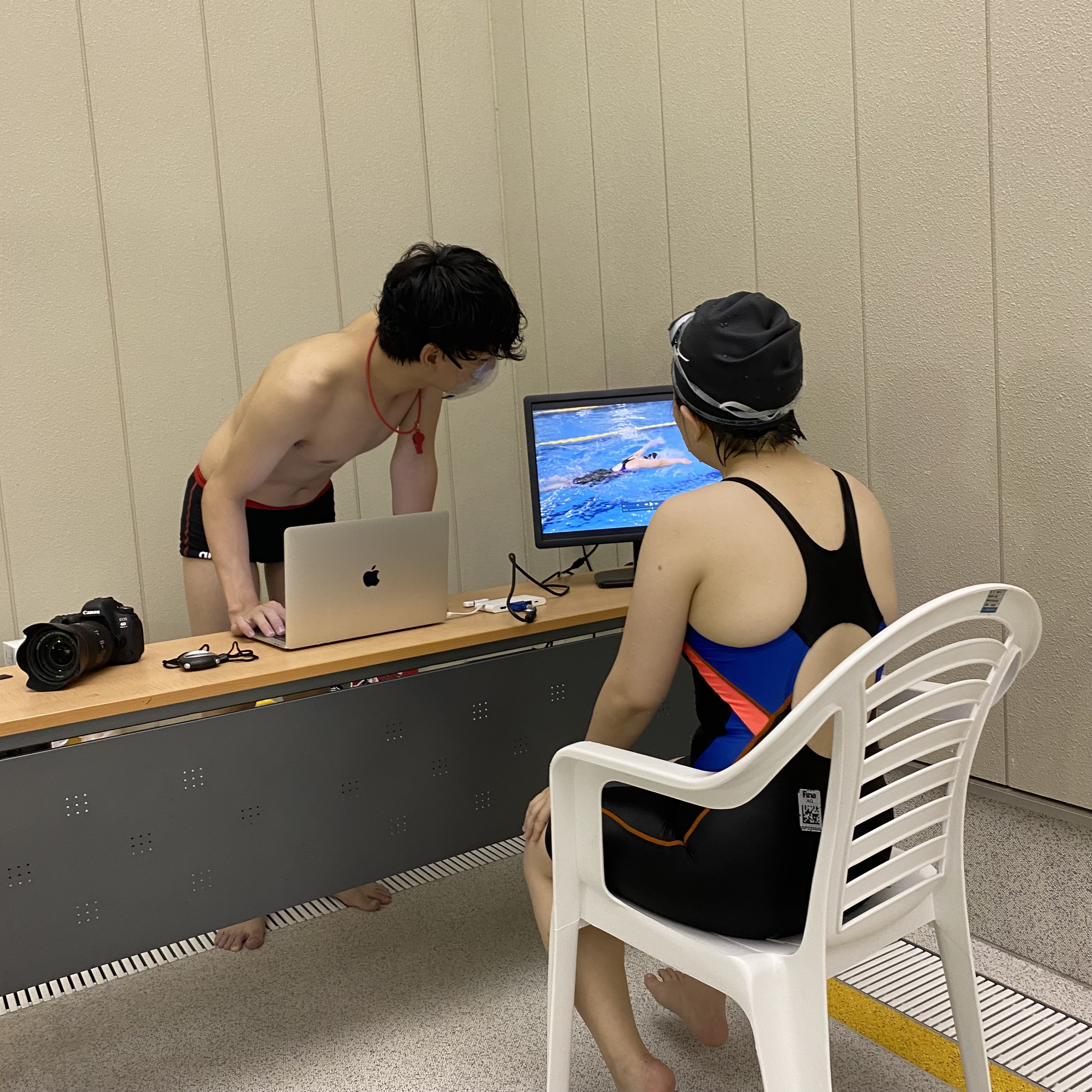 撮影後は直ぐにプールサイドにで映像をチェックし、その方に合わせた泳ぎのポイントをインストラクターがアドバイスします!![]()