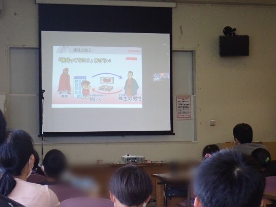 後半は,株券の売買を体験して,合計資産を増やす鷹の爪団の株主王ゲームを行い,楽しみながら株式について学習しました(^0^)