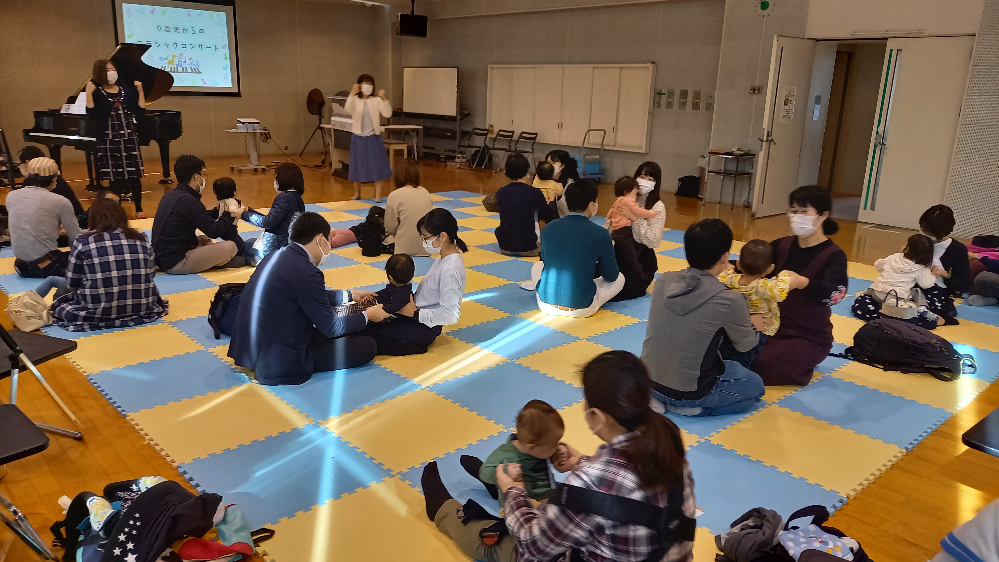 ピアノとエレクトーンによるクラシック音楽の演奏や、絵本のお話に合わせた音楽の演奏の他、親子で触れ合いながらできる手遊び歌や、リズムに合わせて楽器を鳴らしたりと、乳幼児でも楽しめる工夫をした内容となりました。