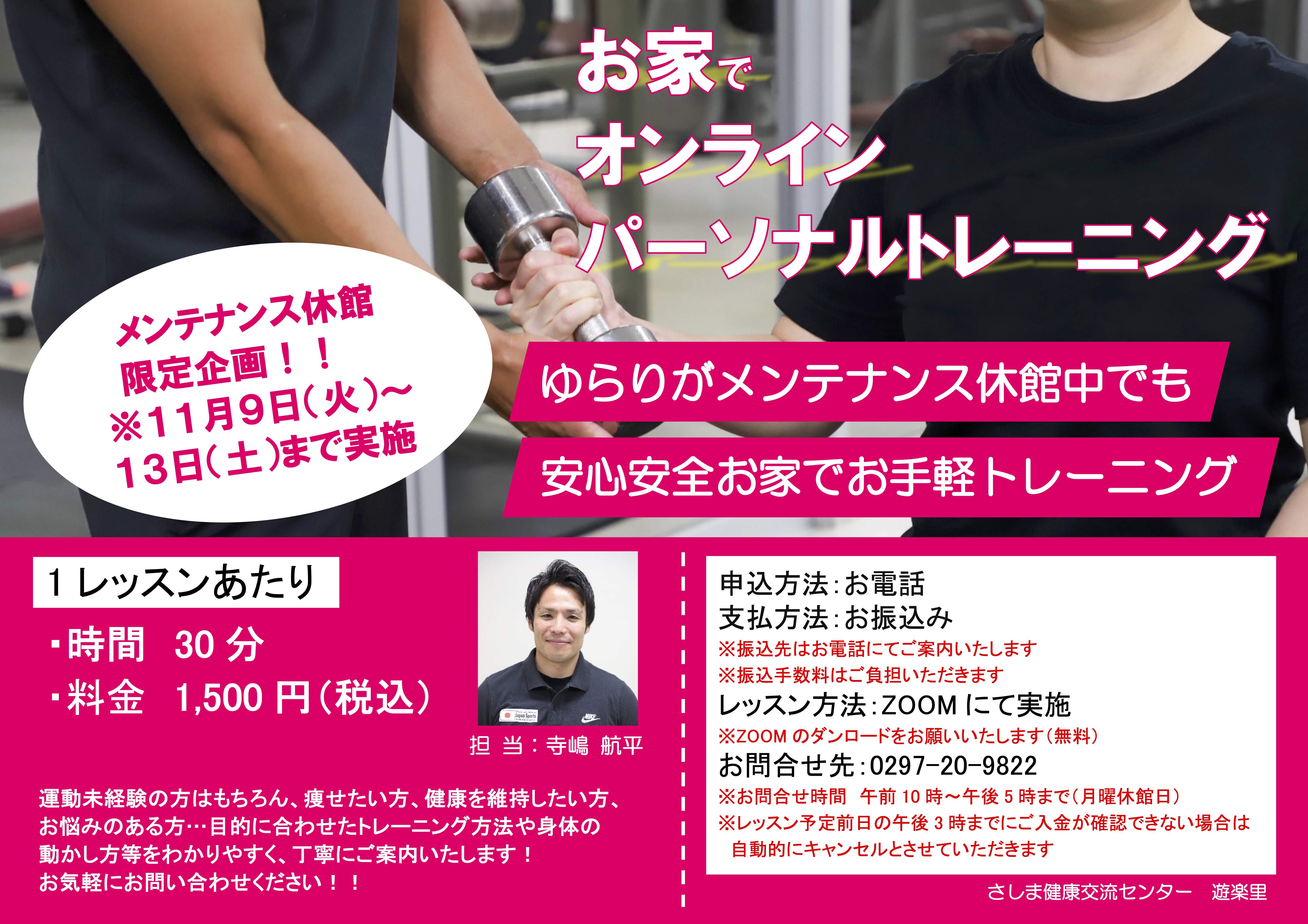 本日はメンテナンス休館期間中に開催いたします「オンラインパーソナル」を紹介させていただきます!