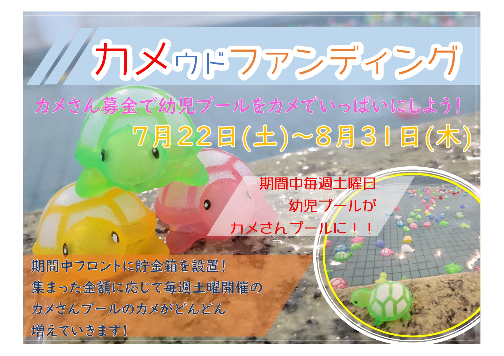 7月22日(土)~8月31日(木)までの期間、毎週土曜日幼児プールエリアにカメさんを浮かべています。